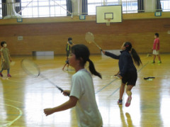 今日からクラブ活動が始まりました。4年生から6年生までが仲良く活動に取り組んでいます。体育館後方ではバドミントンクラブの皆さんが楽しそうに活動していました。