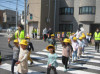 10日(月)1年生の交通安全教室を行いました。実際に学校から平中の交差点まで歩き、信号のある横断歩道を渡る、工事中の道路を誘導員に従い歩く、歩道橋を渡ることを練習しました。