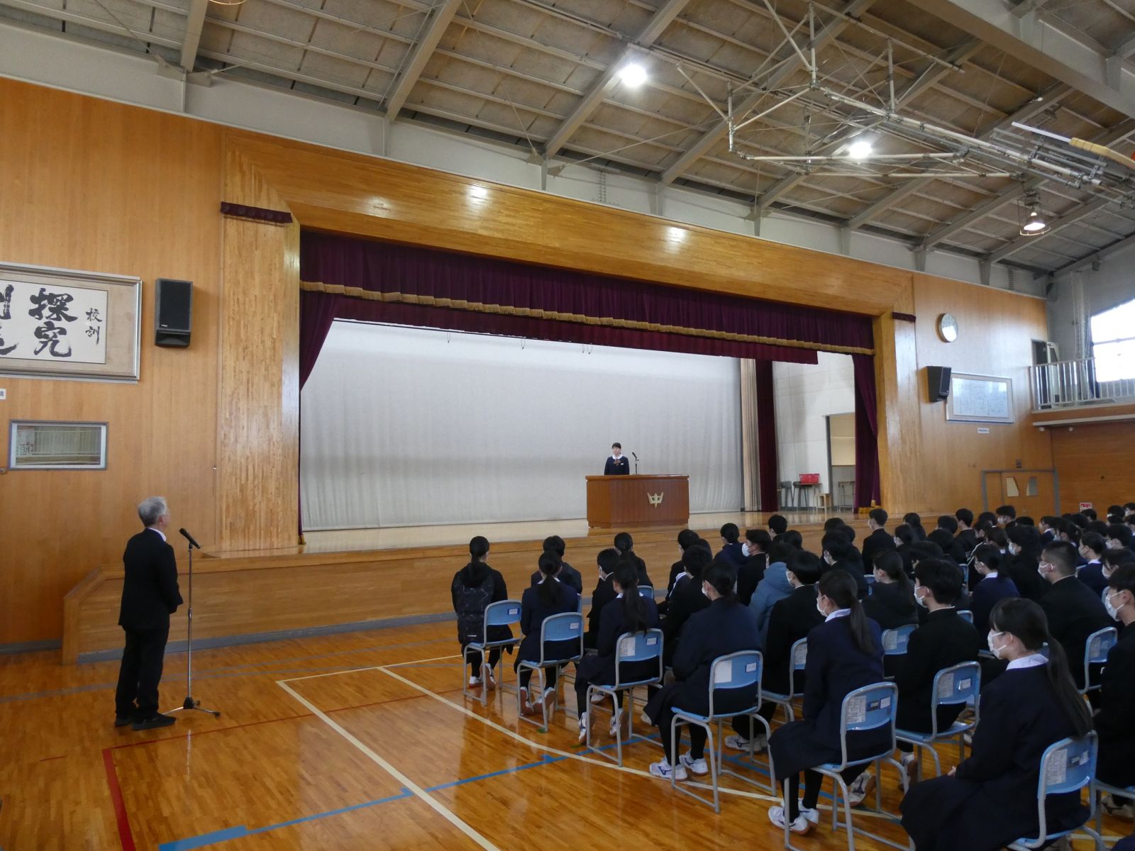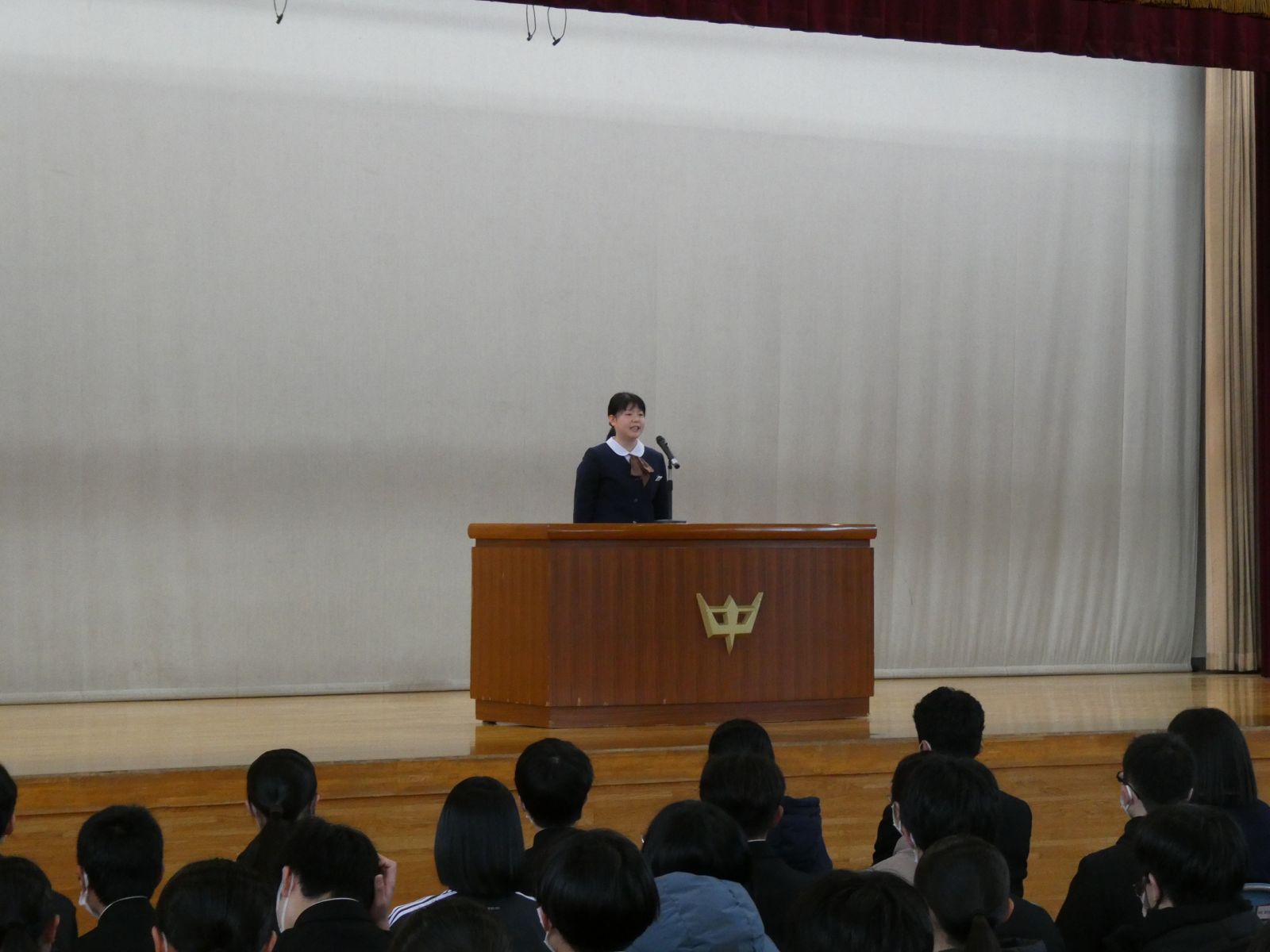 語弁論大会に出場する3年生女子生徒の壮行会を