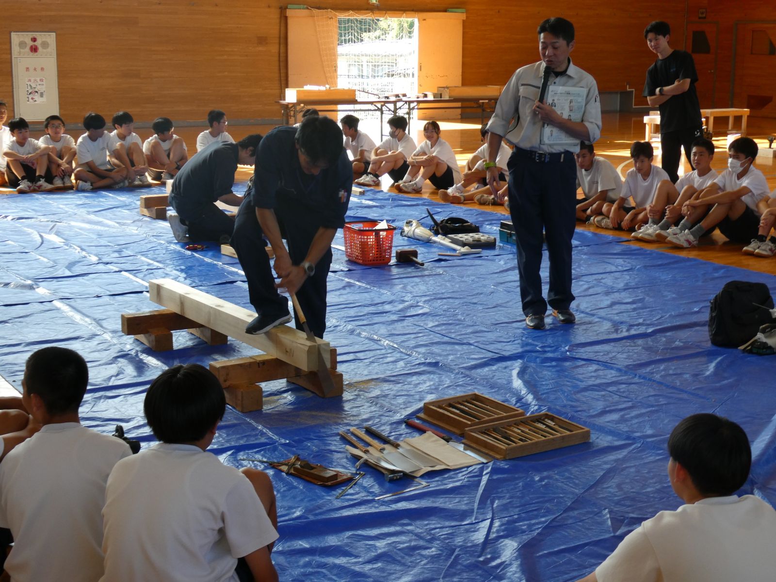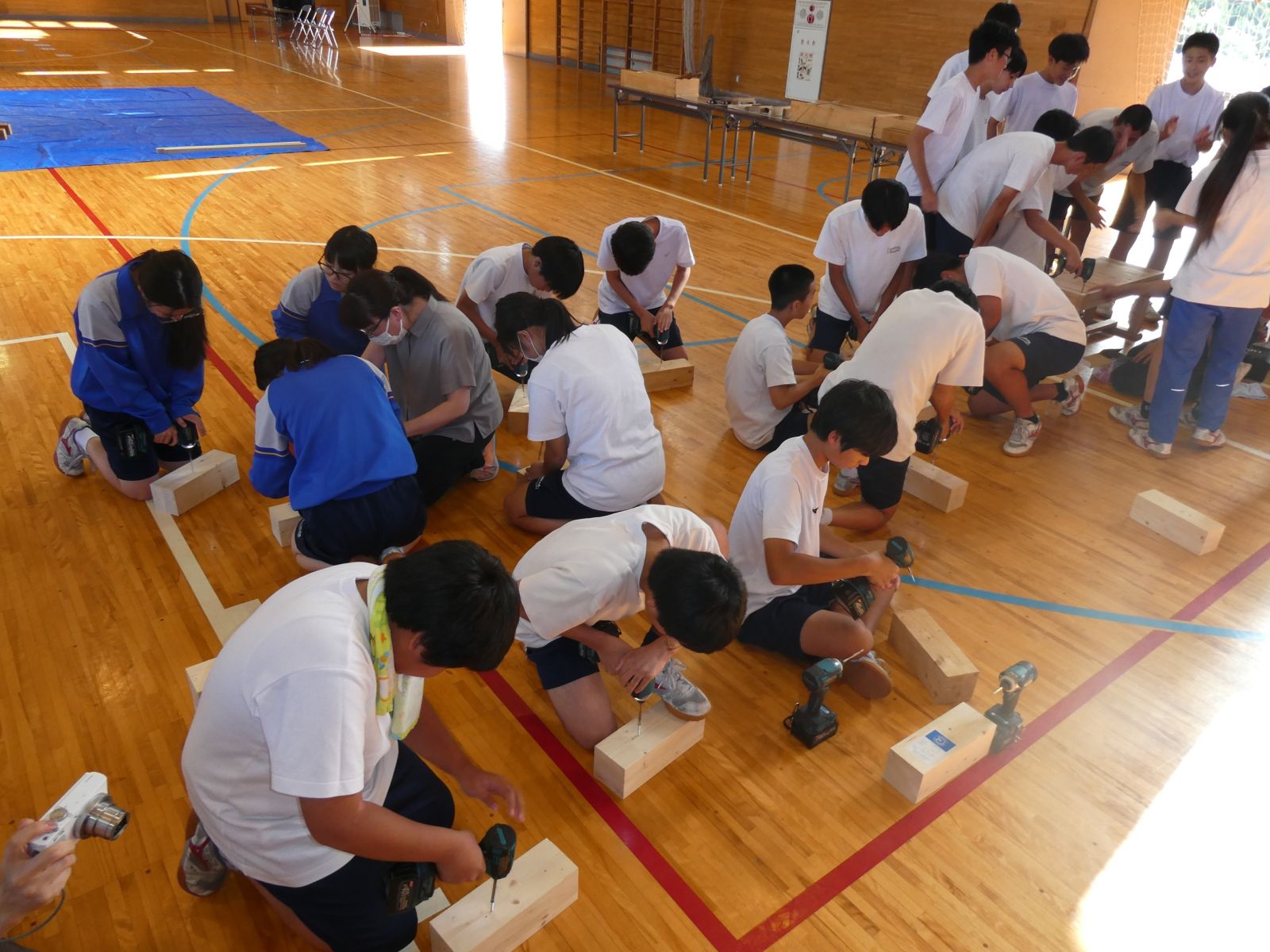 建物づくりについて学び、その後、木材加工組立の体験を行い、