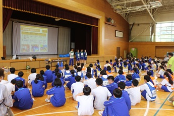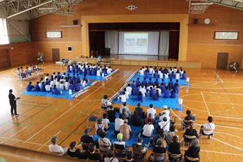 3年生が地域の方たちと協力して避難所設置訓練を行いました。