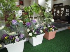 12月4日(木)玄関前に飾る冬用の寄せ植えも急な寒さに一時避難。来週からの三者面談でご覧ください。