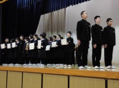 1月27日(火)全校朝会で冬季大会や標語・ポスター・美術展の表彰を行いました。運動面だけでなく多方面での活躍もあり、文武両道でがんばっている姿がうかがえました。