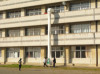 グラウンドに避難後、1年生は救助袋体験をしました。女子は3階から、男子は4階から各クラス1名ずつ体験しました。