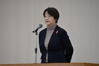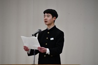 生徒発表では、1年生「勉強に力を入れる」2年生「苦手教科の暗記、部活で心身を鍛える、周りの人を支える」3年生「時間を味方に」を趣旨とした発表がありました。3学期を新年度0学期と位置付けて取り組んでほしいと思います。校長式辞では、「全員全力感動の花」を開かせるために、周りとつながることを意識して生活してほしいとお話がありました。周りとつながるためには、意見の違う人の話を聞くことや自分の意見を伝えることを大切にする。そうして考える力やくじけない心が身につくことを教えていただきました。50日弱の3学期。頑張っていきましょう。