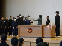 2日、PTA役員会が行われました。学校からは生徒の活動状況や行事での子供たちの成長をお伝えしました。各委員会からは文化祭のお手伝いや地域巡回など活動の報告が行われました。文化祭バザーの収益金を学校に目録としていただきました。教育活動に活用させていただきます。ありがとうございました。