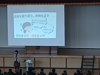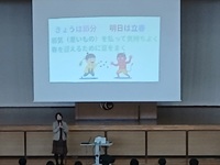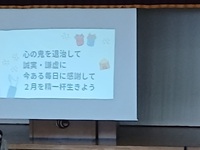 3日、全校朝会が行われました。表彰と校長講話がありました。節分になぞらえて、「心の鬼を退治して、誠実に謙虚に今ある毎日に感謝して2月を精一杯生きよう!」と激励されました。
