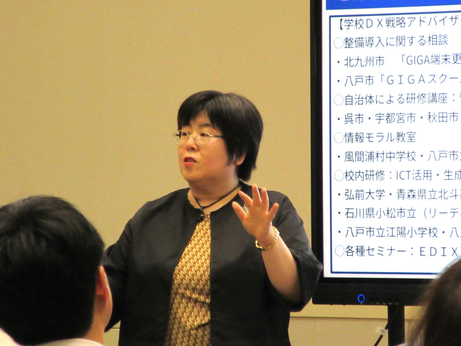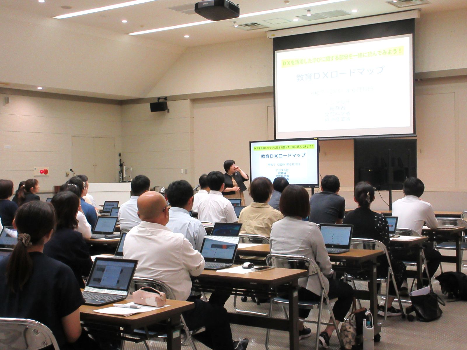 研修では、1人1台端末を活用した授業改善に焦点を当て、