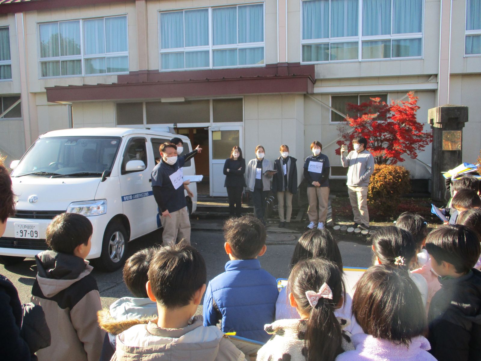11月19日(水)、1年生が、ビリーブケアサポート出前授業を行いました。国語で学習した『じどう車くらべ』の発展学習で訪問入浴車の見学をさせていただきました。
