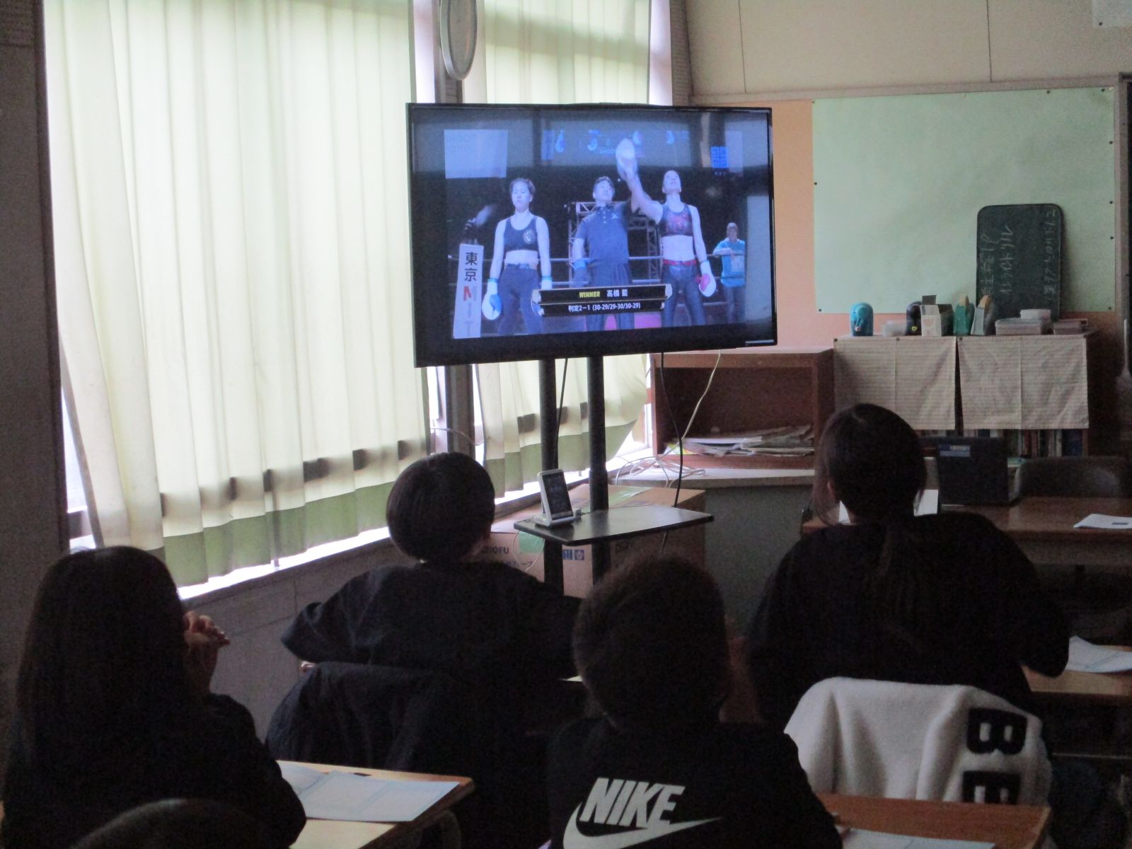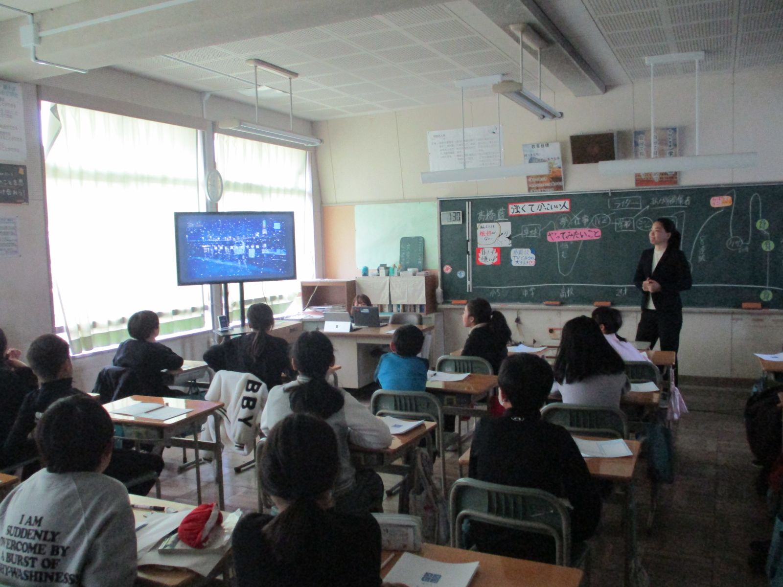 11月19日(水)、5年生がJFAこころのプロジェクト「夢の教室」を実施しました。今日の夢先生はシュートボクサーの高橋藍(あい)先生です。