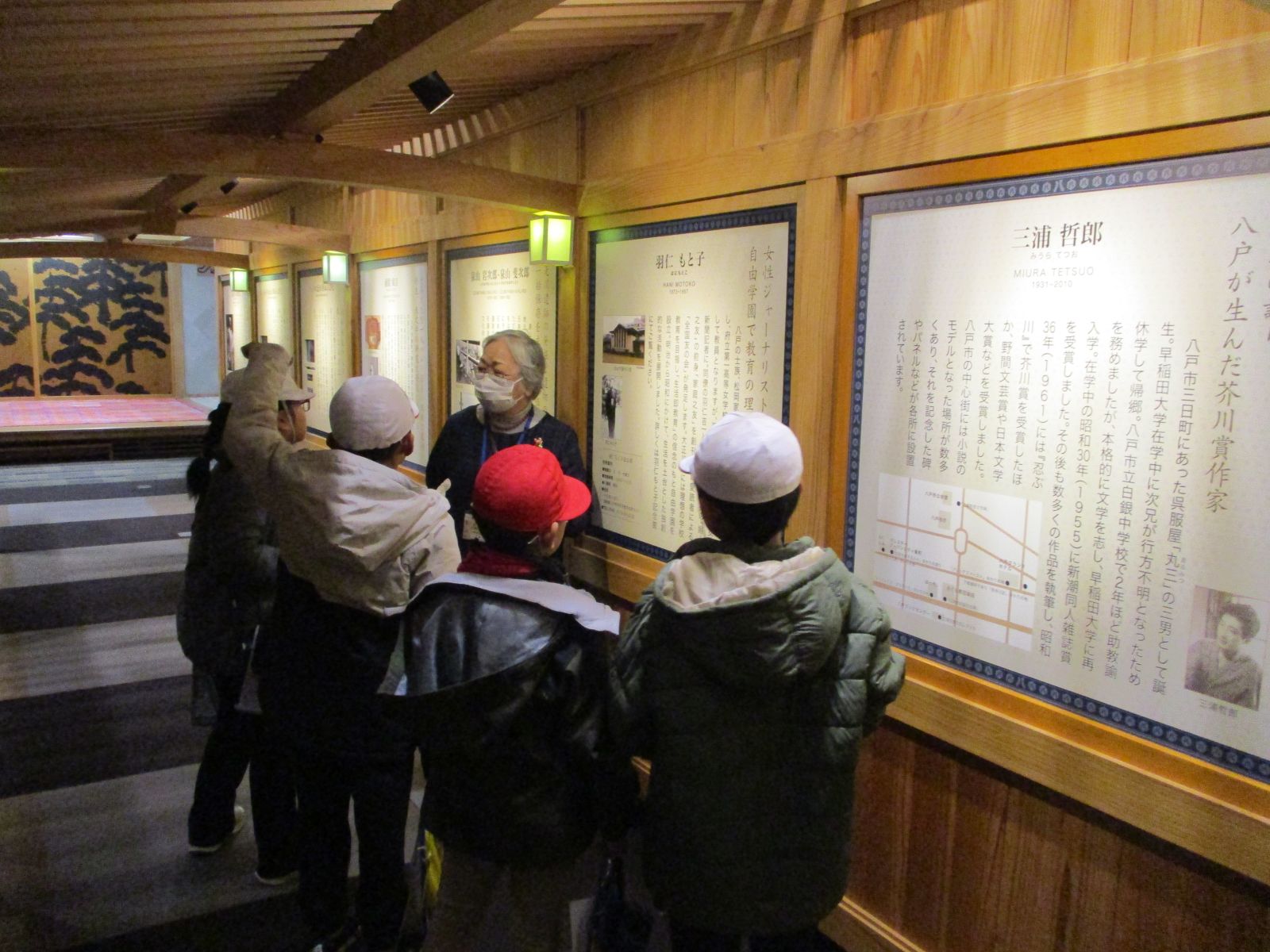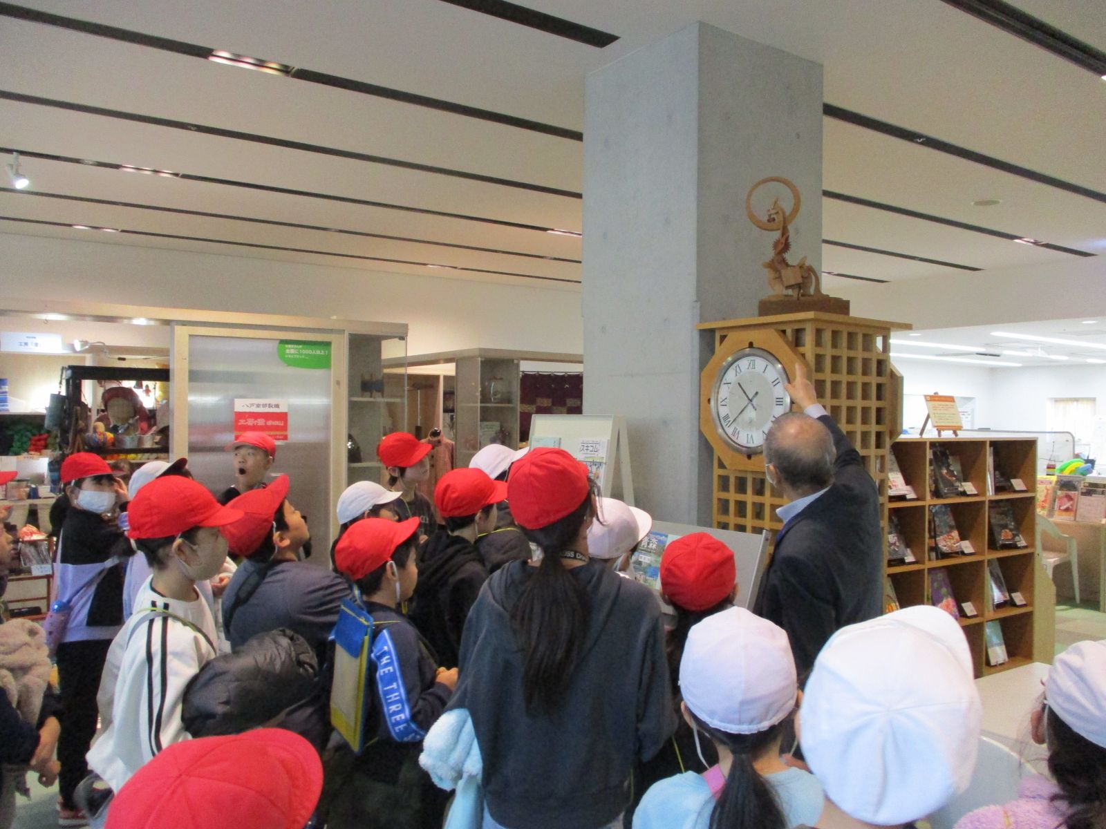 12月1日(月)、4年生が『はっち』の見学をしました。総合的な学習の時間で、前原寅吉さんや三浦哲郎さんについて調べてきました。はっちには、からくり時計が三つあるそうですが、偶然にも?10時と11時の2回、獅子舞時計の演奏に立ち会えました。