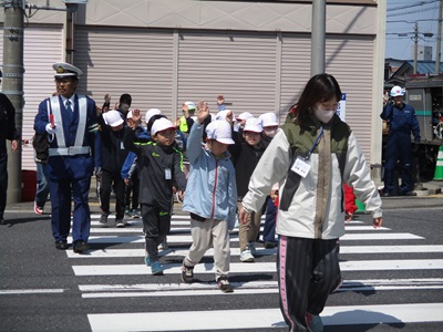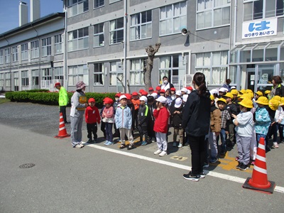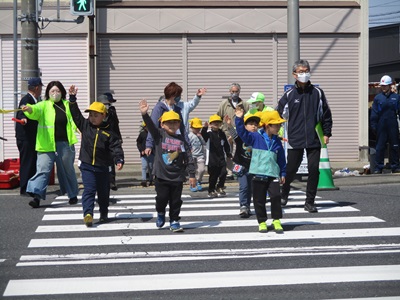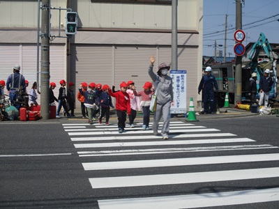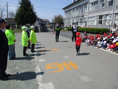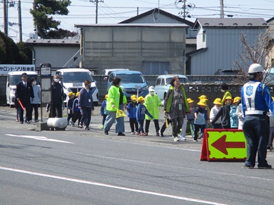 4月13日(火)今日の3校時に、低学年の交通安全教室(歩行訓練)が行われました。