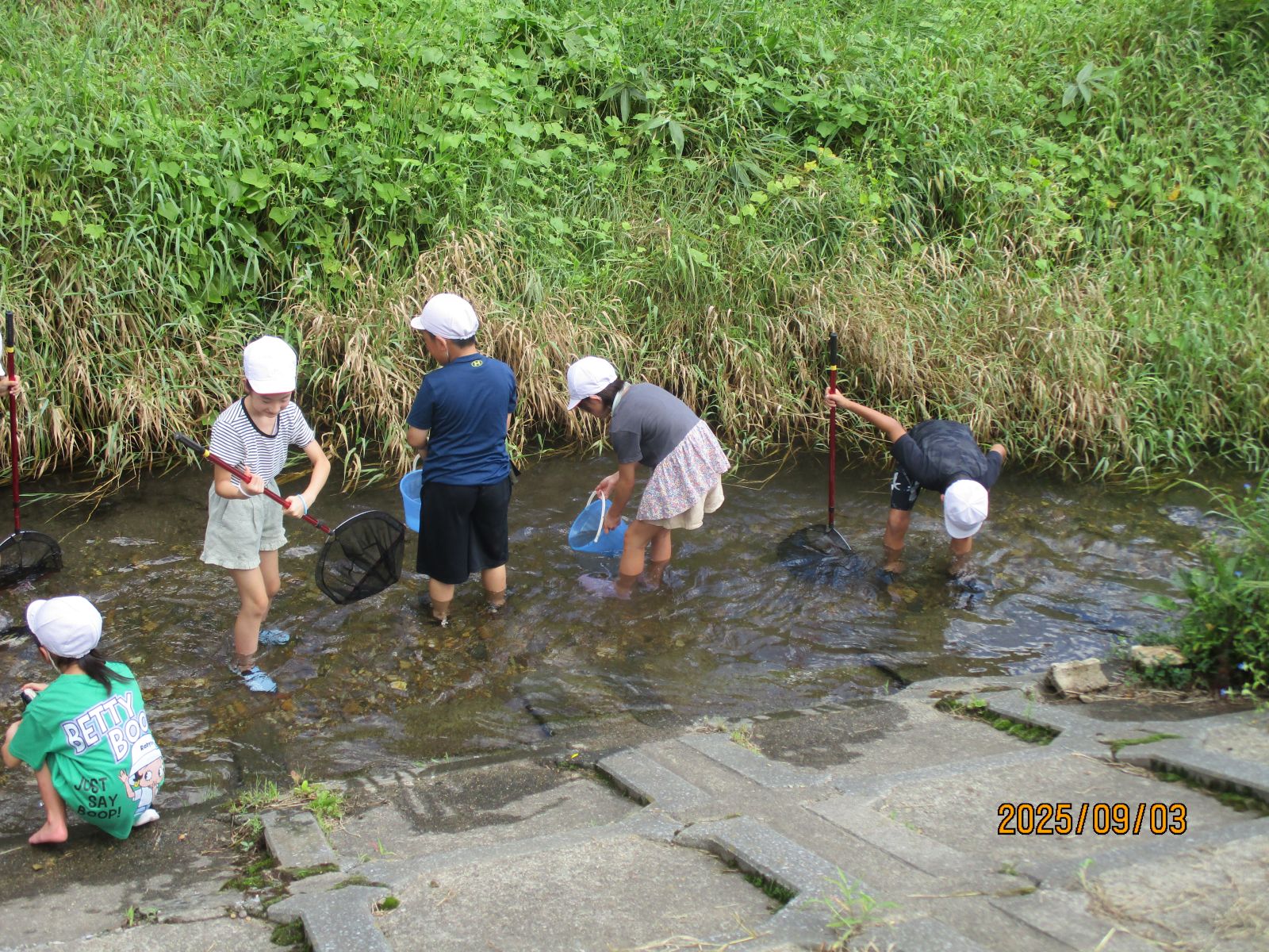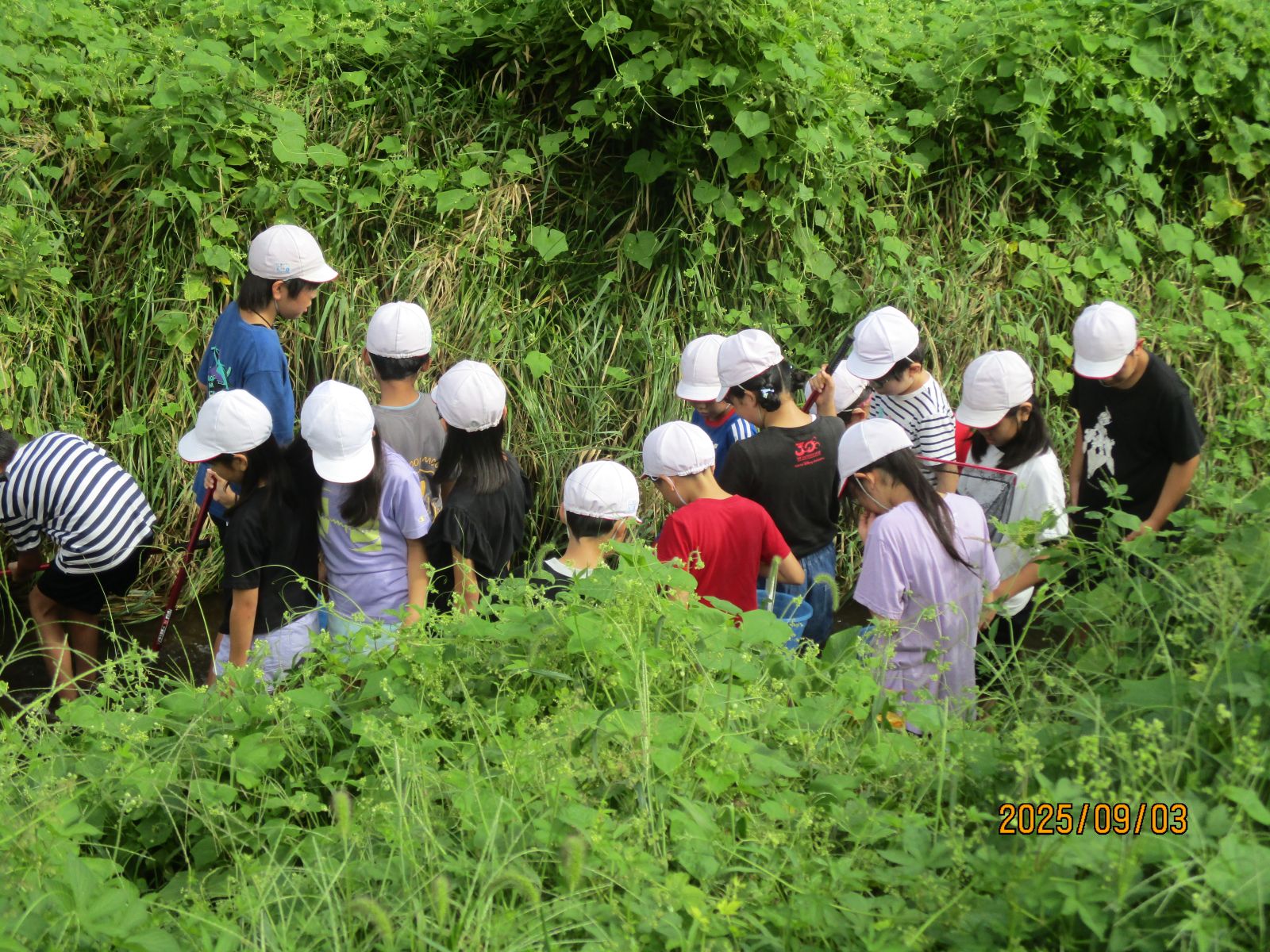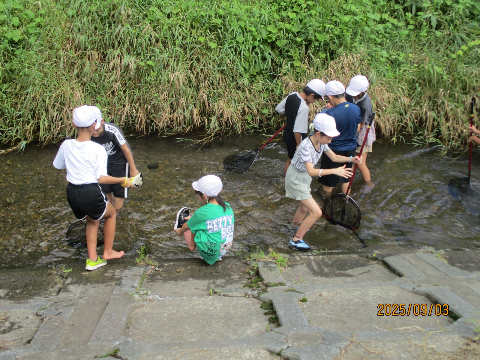 9月3日、4年生が八戸市環境政策課で主催している「せせらぎウオッチング」に行ってきました。川の中にどのような生物がいるかを調べ、見つかった生物について学ぶことで、川に住む生物と水質の関係について理解を深めました。