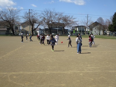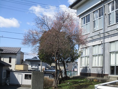 4月8日(水)今日の中休みは、天気もよかったので、たくさんの子たちが校庭で遊びました。その前に、昨日まで咲いていなかった桜の花が咲いていました。