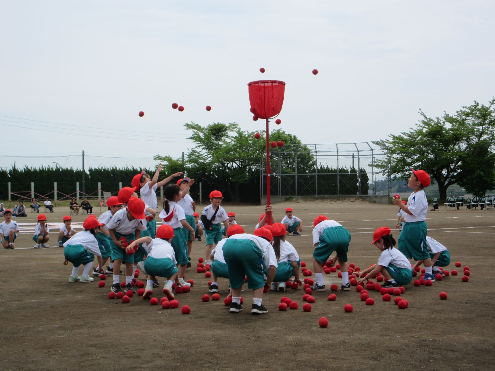 2年生の「おれ・オレ・Ole!」です。30と書いてある大玉を運びました。