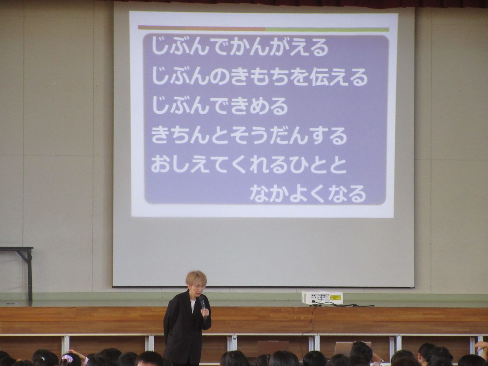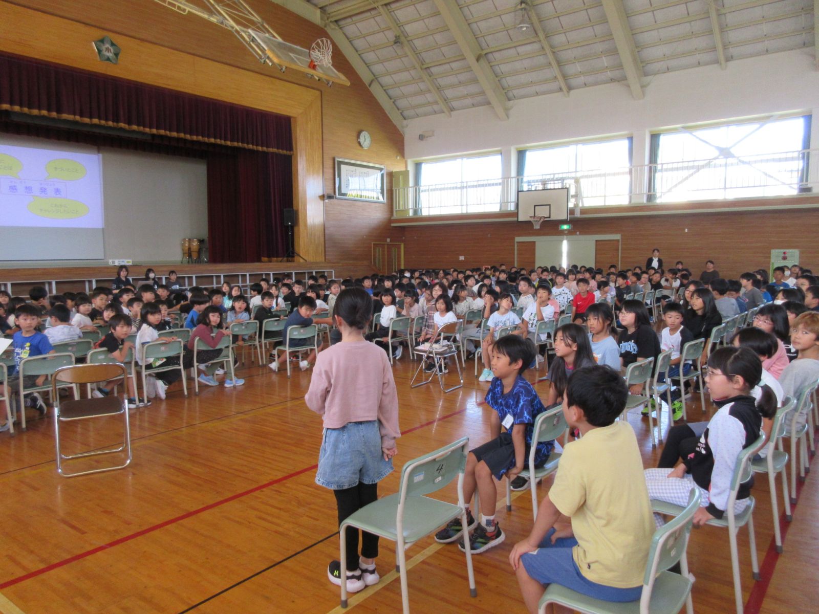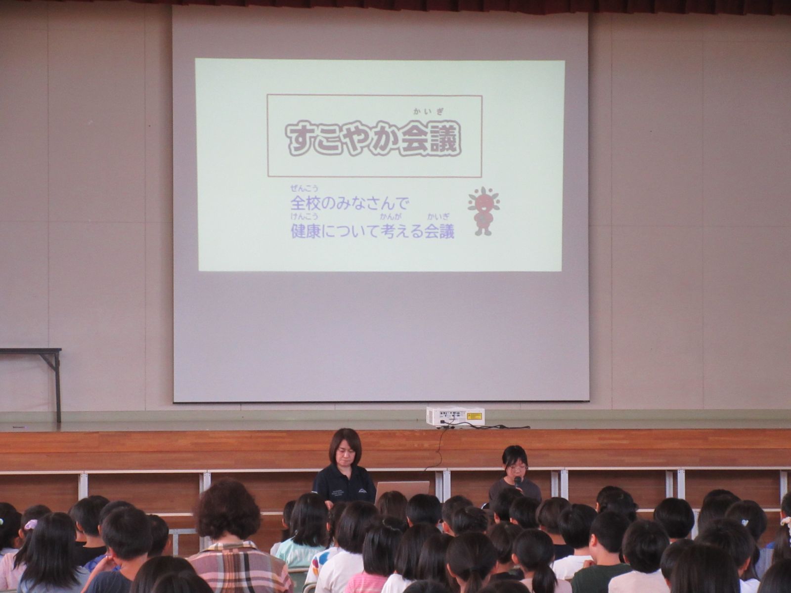9月30日に「すこやか会議」を行いました。「すこやか会議」とは、全校児童で自分たちの健康について考える会議のことです。今回のテーマは、「メディアと健康~ずっともっと成長するためのメディアの使い方~」です。講師はみらいクリエイド代表の森淑乃先生でした。はじめに保健委員会の児童が、メディアコントロール週間の結果とおうちの人からのアンケートについて説明しました。講師の森先生は、子どもたちとやり取りしながら、スマートフォンやゲームの依存性について、事例を交えながら、わかりやすく教えてくださいました。特に「寝る2時間前にはゲームとスマホをやめる」「お家の人に自分のスマホが危なくないように設定してもらう(フィルタリングや利用時間の設定)」ことを強調してお話ししていました。今回の学びを、ご家庭でのメディア使用のルールづくりや、お子様との対話にご活用いただければ幸いです。これからも、学校とご家庭が連携して、子どもたちの心と体の健康を支えてまいります。