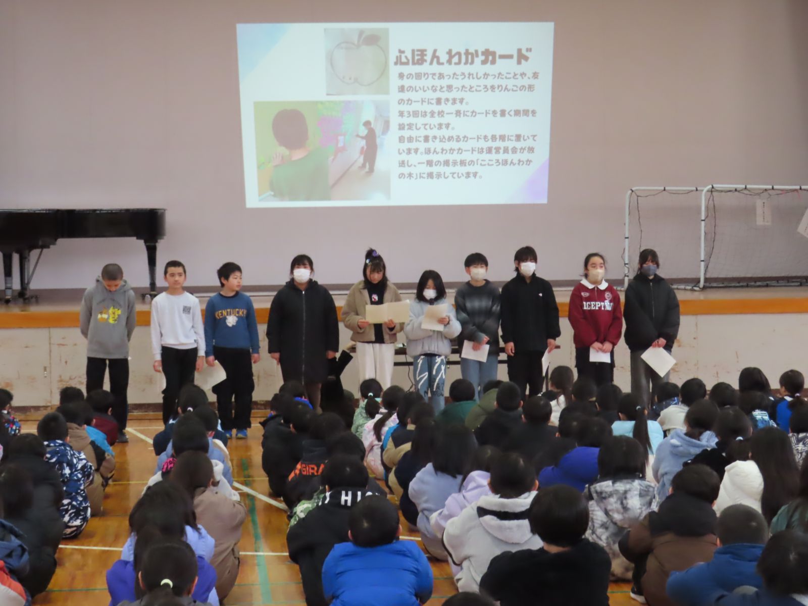 また、運営委員会からは、冬休み中に市内の先生方へ発表した「四つ葉のクローバー運動」を軸にした児童会の取組について発表がありました。取組の充実ぶりがよく伝わる、内容のしっかりとした発表でした。