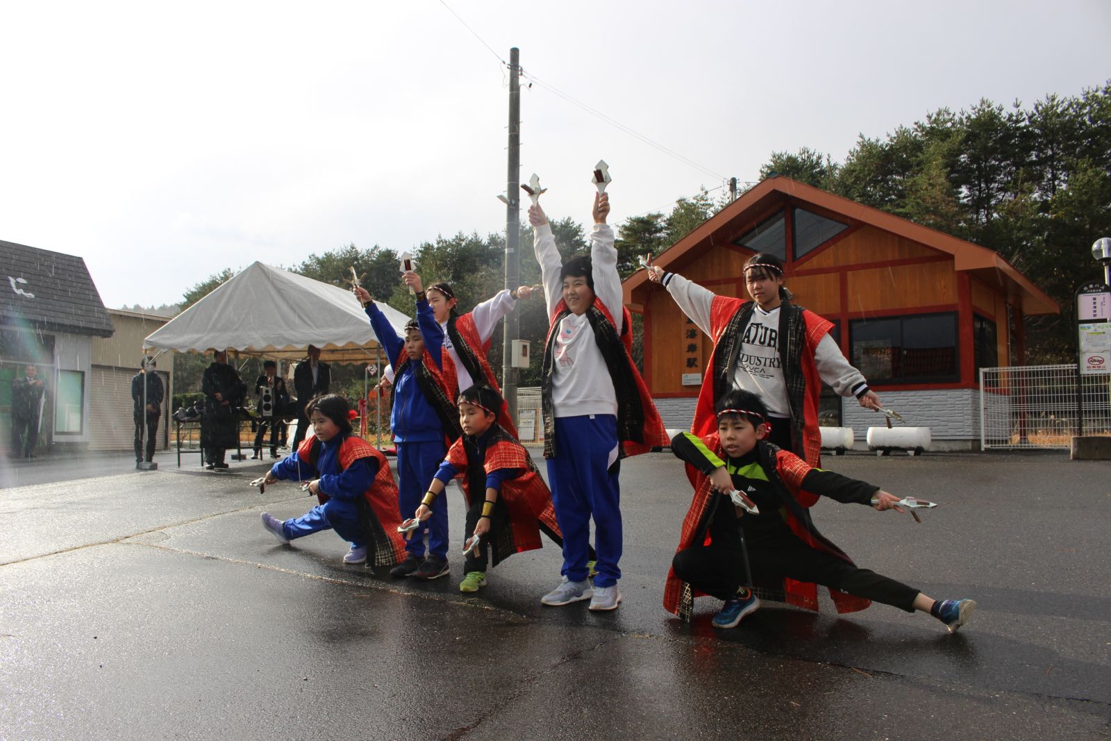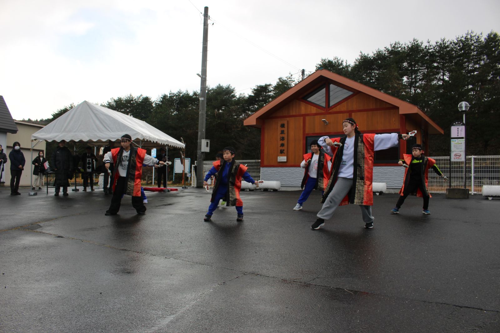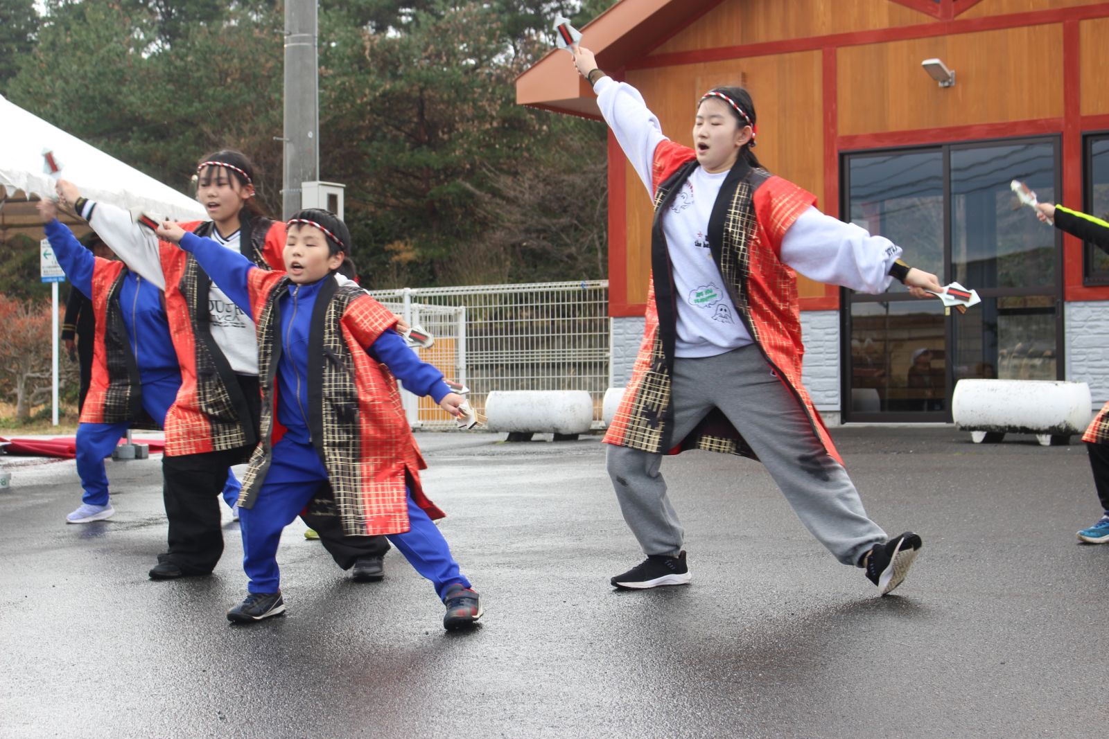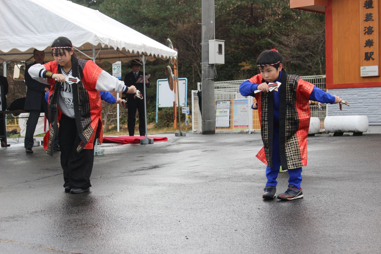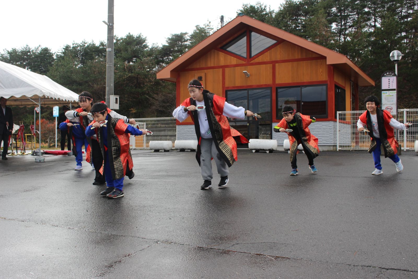 完成をお祝いしてして、金浜小学校の子どもたちが、「金浜ソーラン」を披露しました。