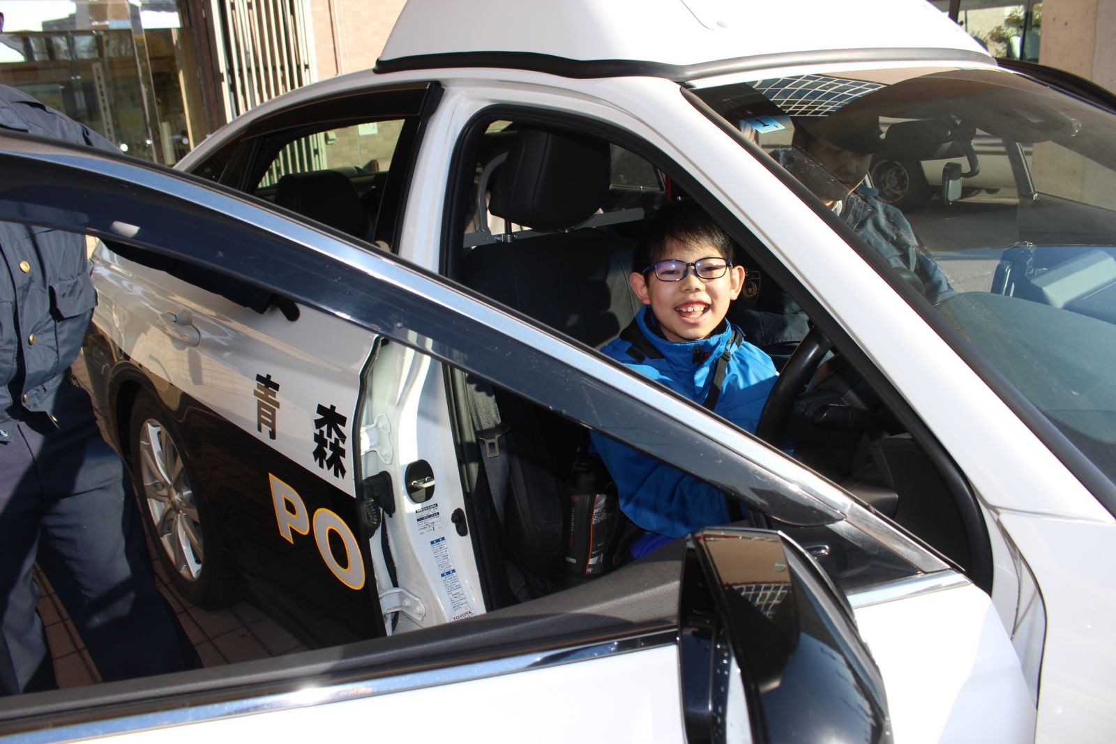 パトカーの中に積み込まれている様々な道具を見たり、パトカーに乗ったりしました。とてもよい経験をさせていただきました。