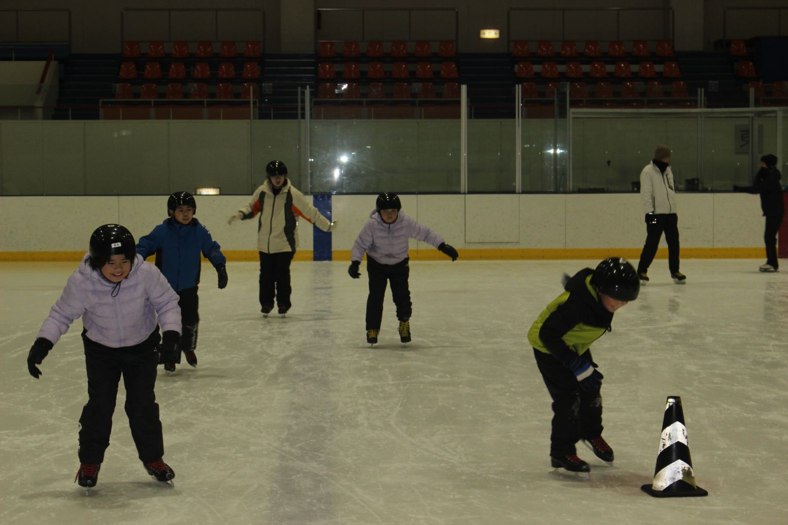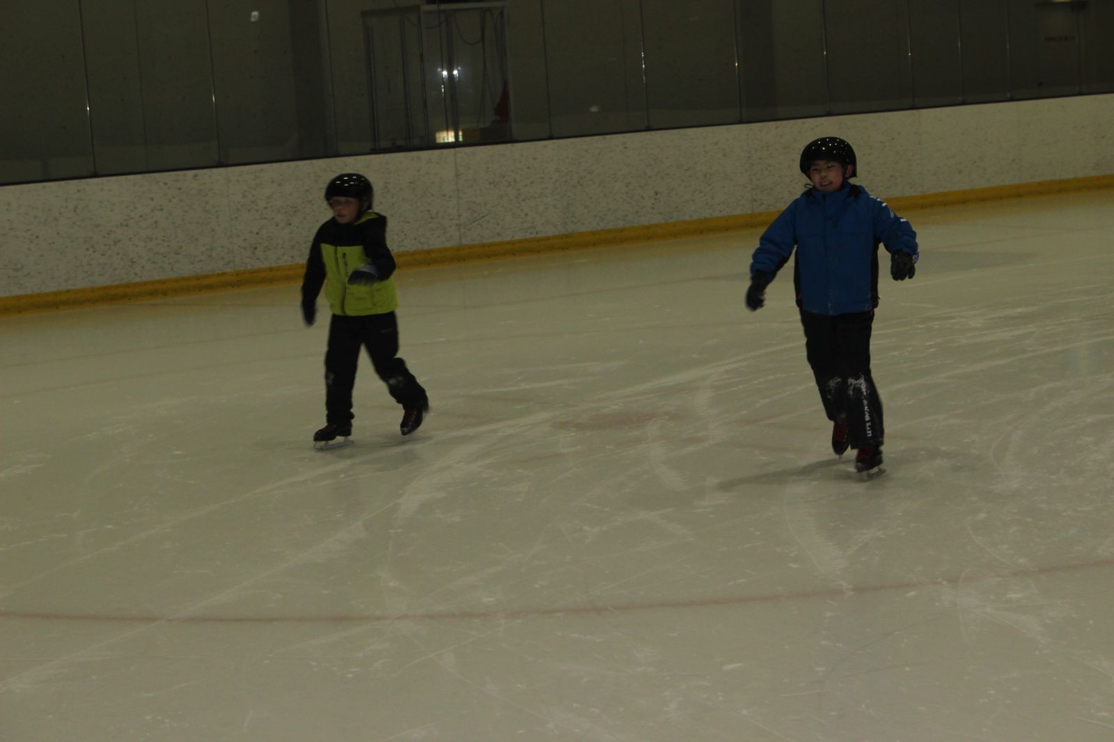 昼食の後は、スケート教室です。2名の講師の先生に教えていただきました。短い時間でしたが、ぐんぐんと上達しました。
