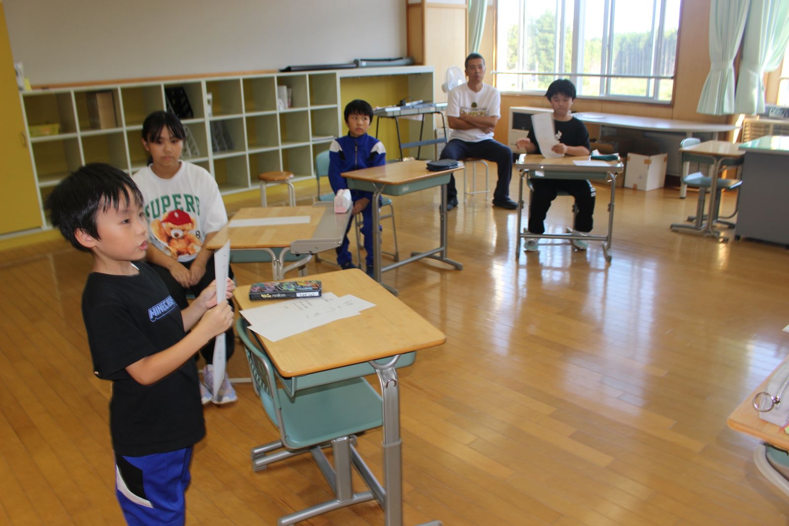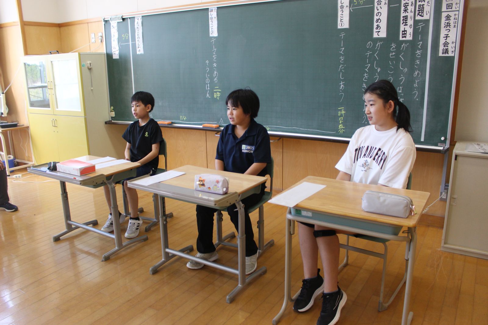 9月26日(金)、金浜っ子会議が行われました。今回の議題は、「学習発表会のテーマを決めよう」です。6年生が4年生を助けながら話合いを進めていました。