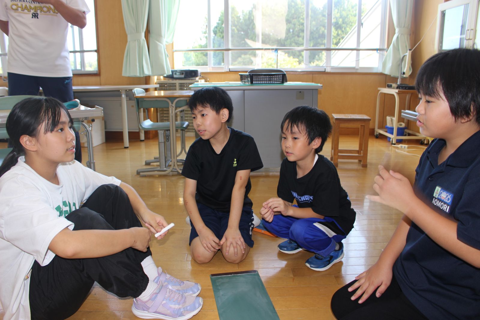 グループに分かれての話合いです。6年生が、上手にリードして話合いを進めていました。