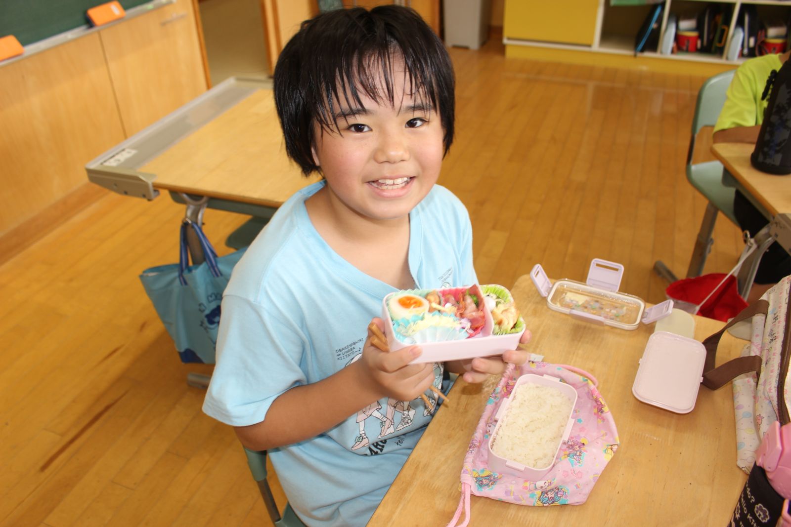 10月7日(火)は、手づくり弁当の日でした。子どもたちは、この日が大好きです。笑顔でお弁当を見せてくれました。とっても美味しそうですね!