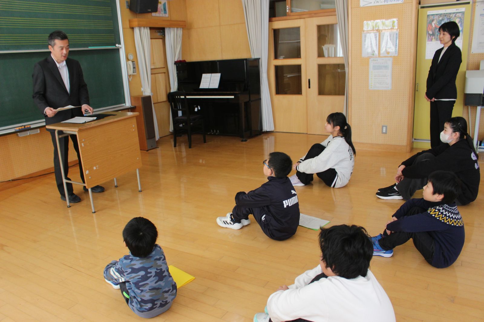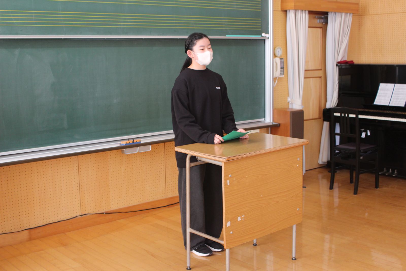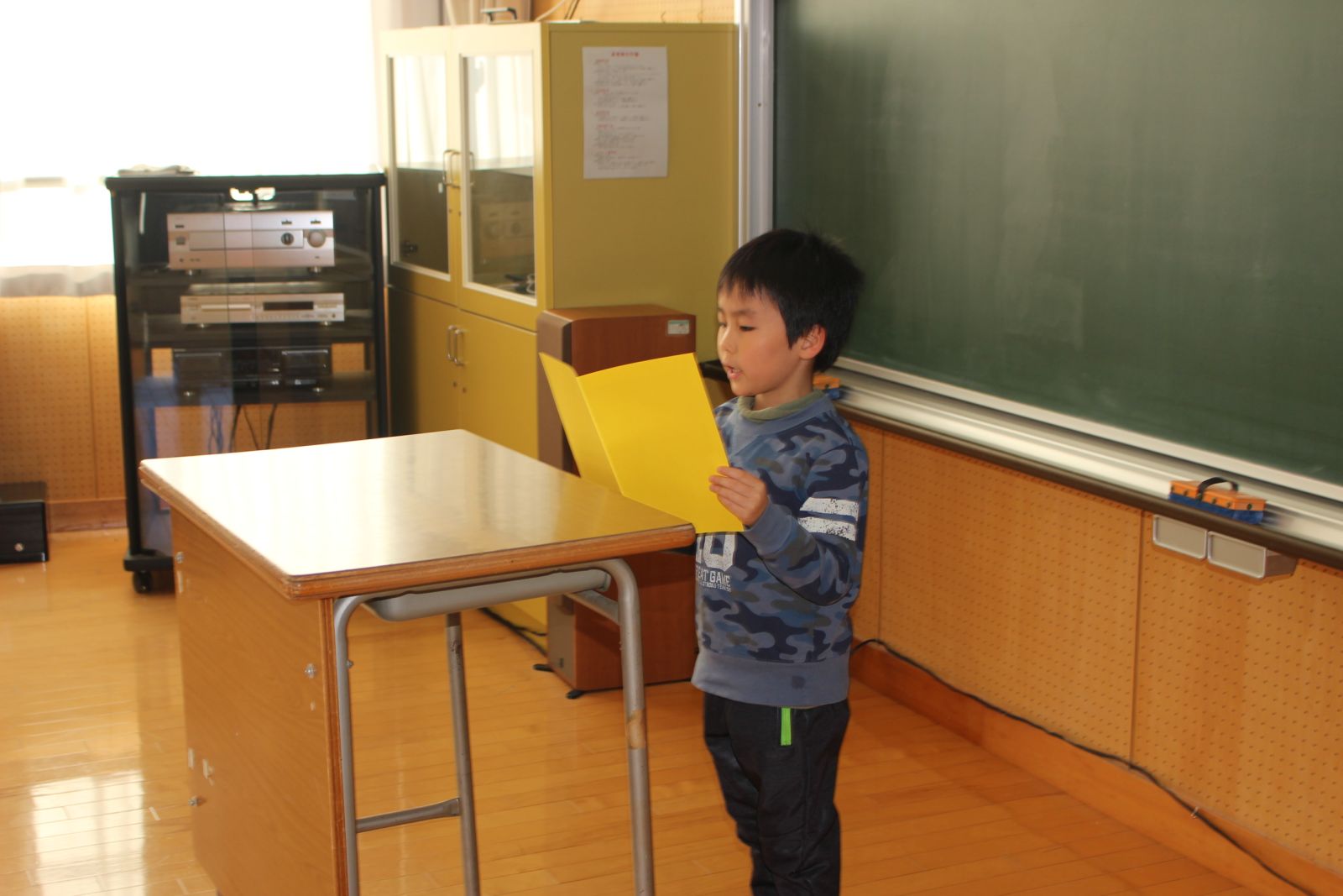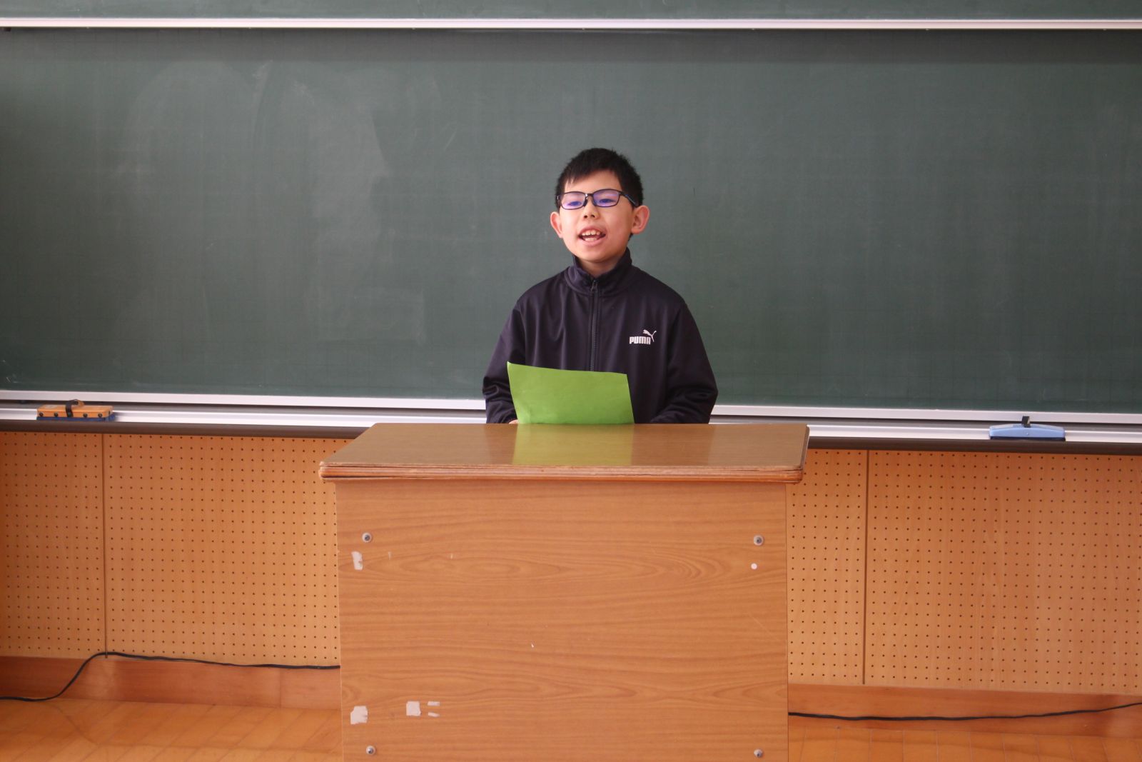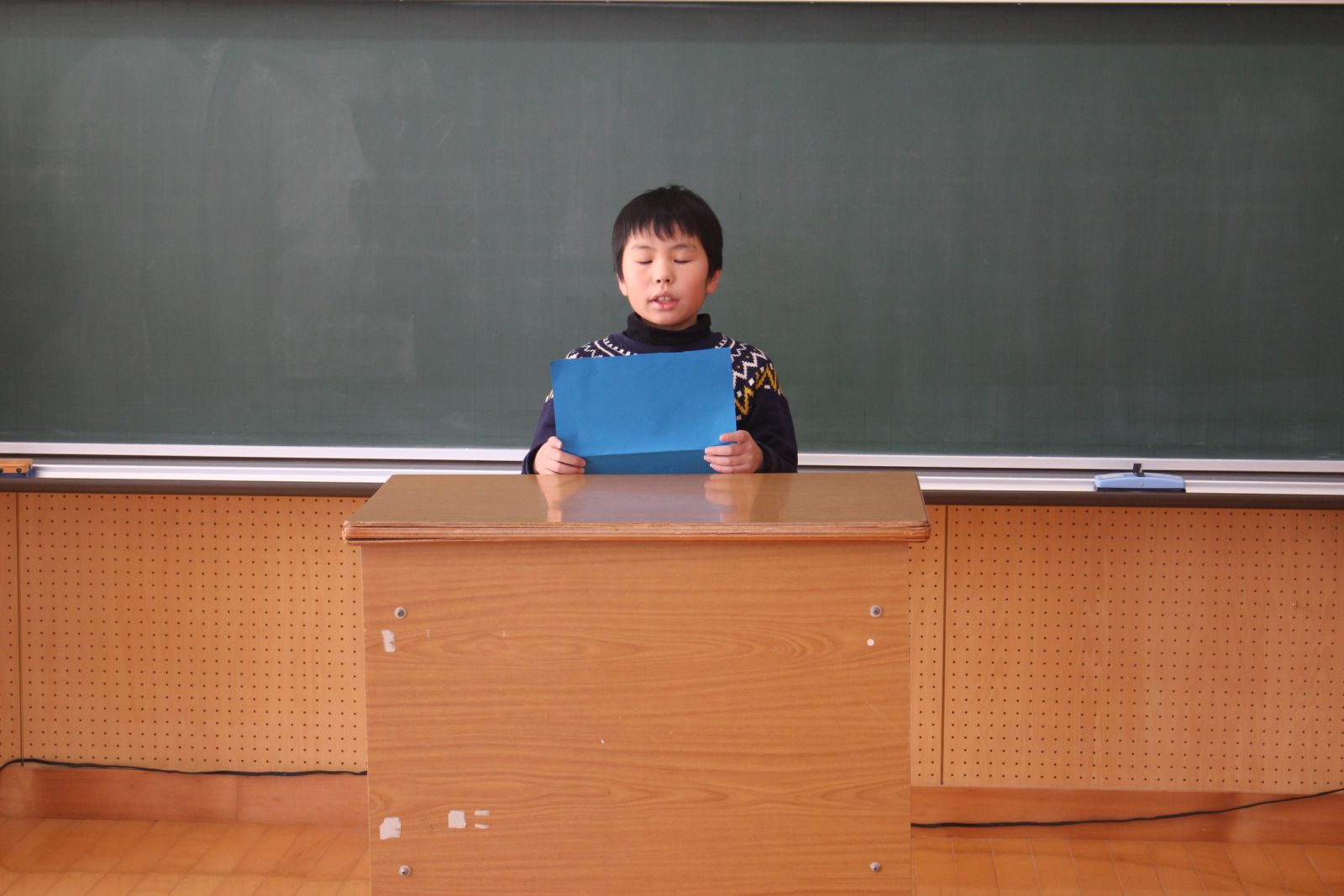 12月23日(火)、2学期終業式が行われました。まず最初に、4人の児童が2学期がんばったこと、冬休みのめあてを発表しました。態度も大変立派で、2学期、とてもよくがんばったことが伝わってくる発表でした。