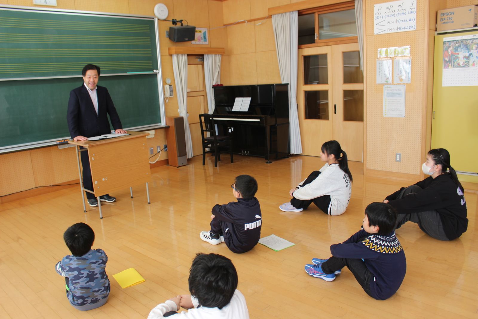 校長先生からのお話です。聞く態度も素晴らしいです。