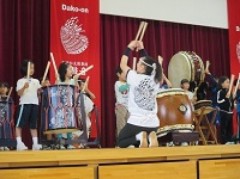 6月14日(火) 和太鼓の力強い音が体育館に響き渡りました。今日、音楽鑑賞会が開催されました。下学年の部と上学年の部の二部構成での開催です。和太鼓の歴史は古く、縄文時代からあったそうです。大太鼓、桶胴太鼓、締太鼓、長胴太鼓に、ドラやチャッパと呼ばれる楽器も登場しました。柏っ子も「和太鼓集団 打鼓音(だこおん)」の皆さんと一緒に演奏しました。