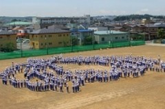6月29日 学校創立80周年の記念に航空写真を撮りました。1年生から6年生までの柏っ子が、先生方や保護者の方、地域の方と一緒に撮影しました。校庭にくっきり描かれた校章にきれいに並び、「校歌」を歌いました。すると南の空から飛行機が現れました。柏っ子のすてきな歌声が飛行機の中の方々にも伝わったのでしょうか?「ありがとう!おめでとう!」と言っているように上空を旋回していきました。