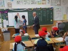 7月20日 学校では、地域とともに子どもたちを健やかに育むために「校外子ども会」を組織しています。明後日から1か月の夏休みに入ります。そこで、各町内会の会長さんや安全パトロール協議会をはじめとする柏崎地区の関係団体の代表の方々にご来校いただき、校外子ども会を開催しました。各町内の行事のお知らせや地域安全マップを活用した危険個所等の確認、そして夏休みの生活についての話合いをしました。交番の所長さんも参加してくださいました。ご多用のところありがとうございました。1年生も地域の方のお顔とお名前を憶えて帰りました。
