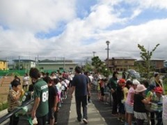 7月23日(土) PTA3学年委員会と父親の会が、今年も夏休みに入った最初の土曜日に「サマーフェスタ」を開いてくださいました。学校創立80周年を記念して第一部(昼の部)は、「80メートル流しそうめん大会」を行いました。お父さんやお母さん方が、力を合わせ工夫しながら準備してくださいました。お腹も心もいっぱいになったようです。第二部(夜の部)は校舎をスクリーンに学校の歩みを振り返るプロジェクションマッピングと打ち上げ花火が開催されました。柏っ子の家族や卒業生、地域の方々がたくさん校庭に集まりました。「ゆずり葉」のように、お父さんやお母さんの思いが、柏っ子の心に継承されていくことでしょう。