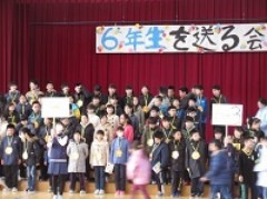 2月24日(金) 5年生と実行委員が中心となり準備してきた「6年生を送る会」が、2時間目と3時間目に開かれました。第1部は、縦割りグループでの送る会、第2部は体育館に集まっての全校での送る会でした。4年生の花のアーチの下を1年生と手をつないで入場した6年生。ちょっと恥ずかしそうでした。笑顔と笑い、そしてありがとうがいっぱいの会となりました。恒例の「かしわレンジャーの引継式」も無事終了しました。創立80周年を牽引してくれた6年生、ありがとう!