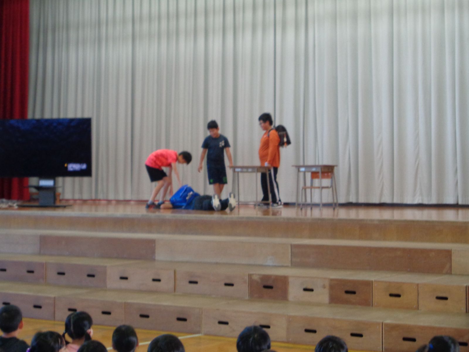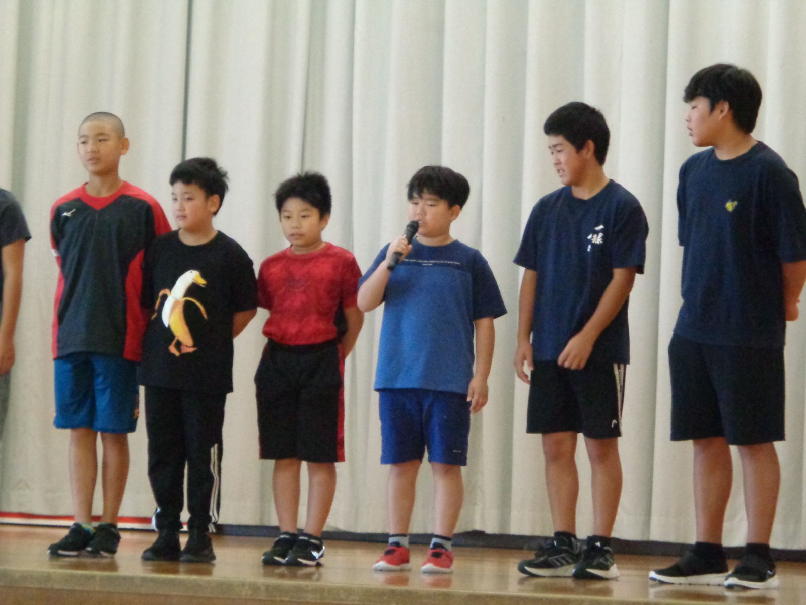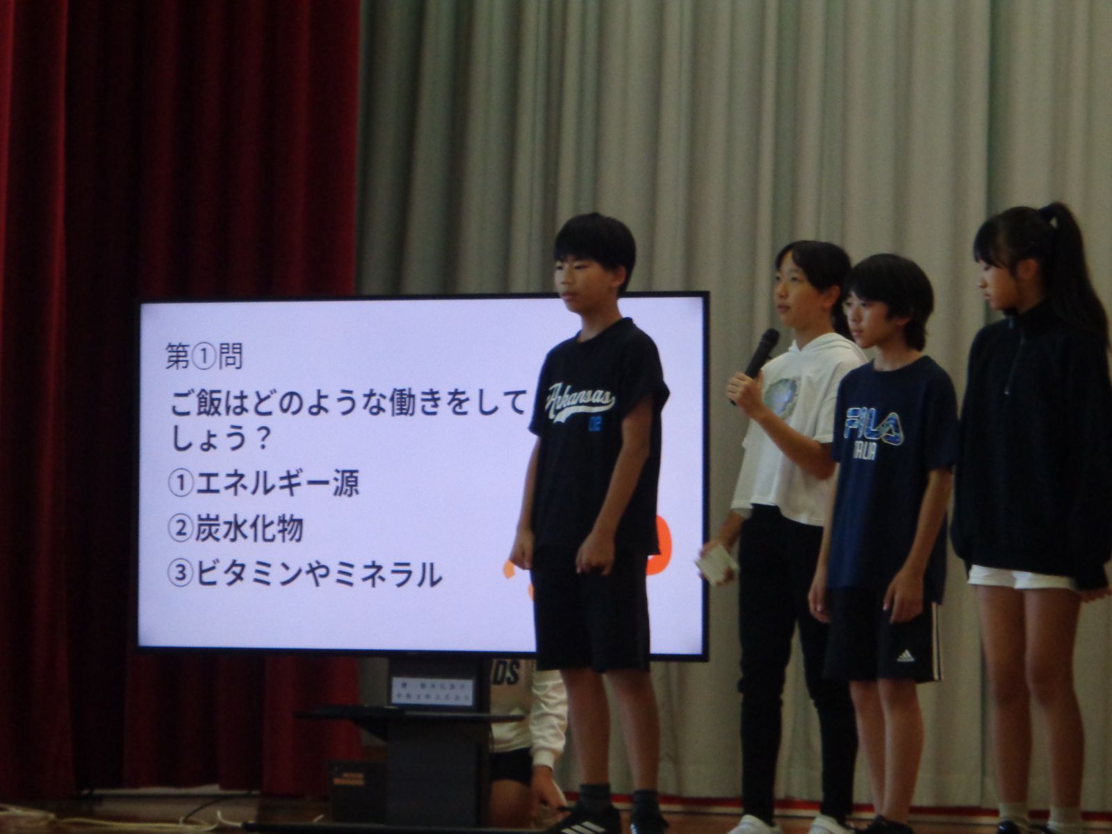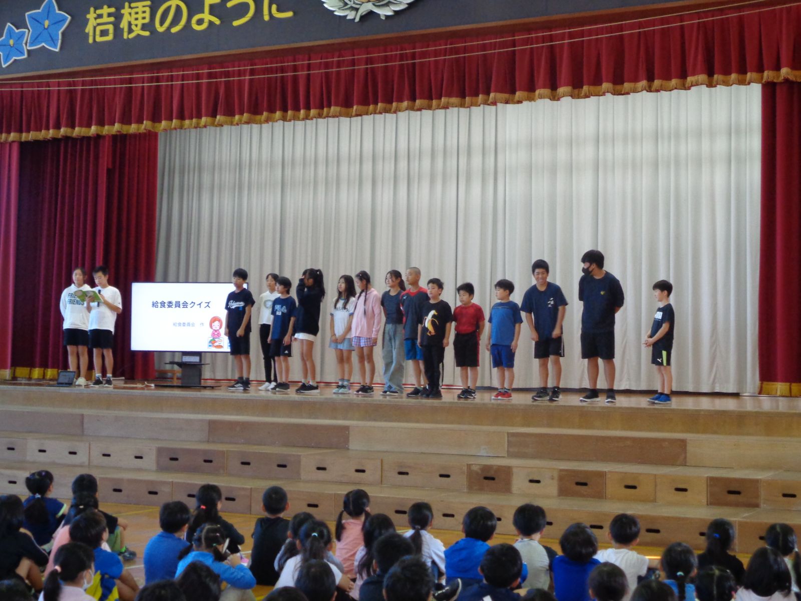 5月2日に、1年生を迎える会を行いました。1年生は6年生と手をつないでドキドキしながら入場しました。3年生は全員で一言メッセージを工夫した「はじめの言葉」、6年生は1年生一人一人の「紹介」、2年生は自分たちが去年育てたアサガオの種の「プレゼント」、4年生は学校にまつわる「クイズ」、5年生は学校生活の「寸劇」、どの学年も1年生が楽しめるように、全員で協力しながら歓迎することができました。1年生も笑顔でお礼の言葉を伝えることができました。本校が、これまで力を入れて取り組んできた特別活動の成果が、1年生を迎える会でも十分に発揮されました。