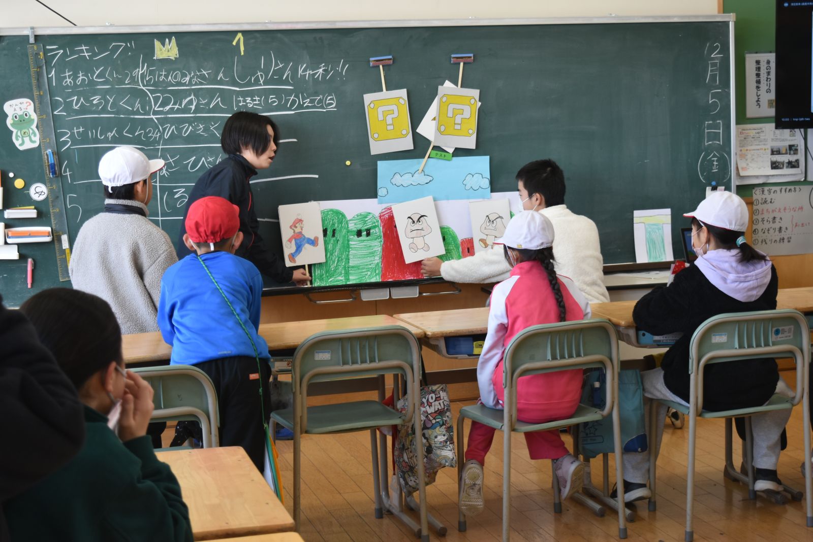 5月2日に、1年生を迎える会を行いました。1年生は6年生と手をつないでドキドキしながら入場しました。3年生は全員で一言メッセージを工夫した「はじめの言葉」、6年生は1年生一人一人の「紹介」、2年生は自分たちが去年育てたアサガオの種の「プレゼント」、4年生は学校にまつわる「クイズ」、5年生は学校生活の「寸劇」、どの学年も1年生が楽しめるように、全員で協力しながら歓迎することができました。1年生も笑顔でお礼の言葉を伝えることができました。本校が、これまで力を入れて取り組んできた特別活動の成果が、1年生を迎える会でも十分に発揮されました。