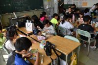 漢字パズル:いつもと違う字体に高学年も大苦戦でした。