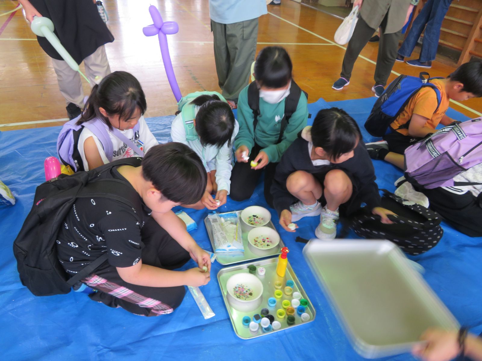 9月20日(土)参観日、授業のあとにはこれまでのバザーに代わり、保護者の皆様が企画・準備したブースを子どもたちが楽しむドリームフェスタが行われました。子どもたちは、1・6年生、2・5年生、3・4年生でグループをつくり、助け合いながらものづくりを楽しんだり、ゲームに挑戦したりしました。