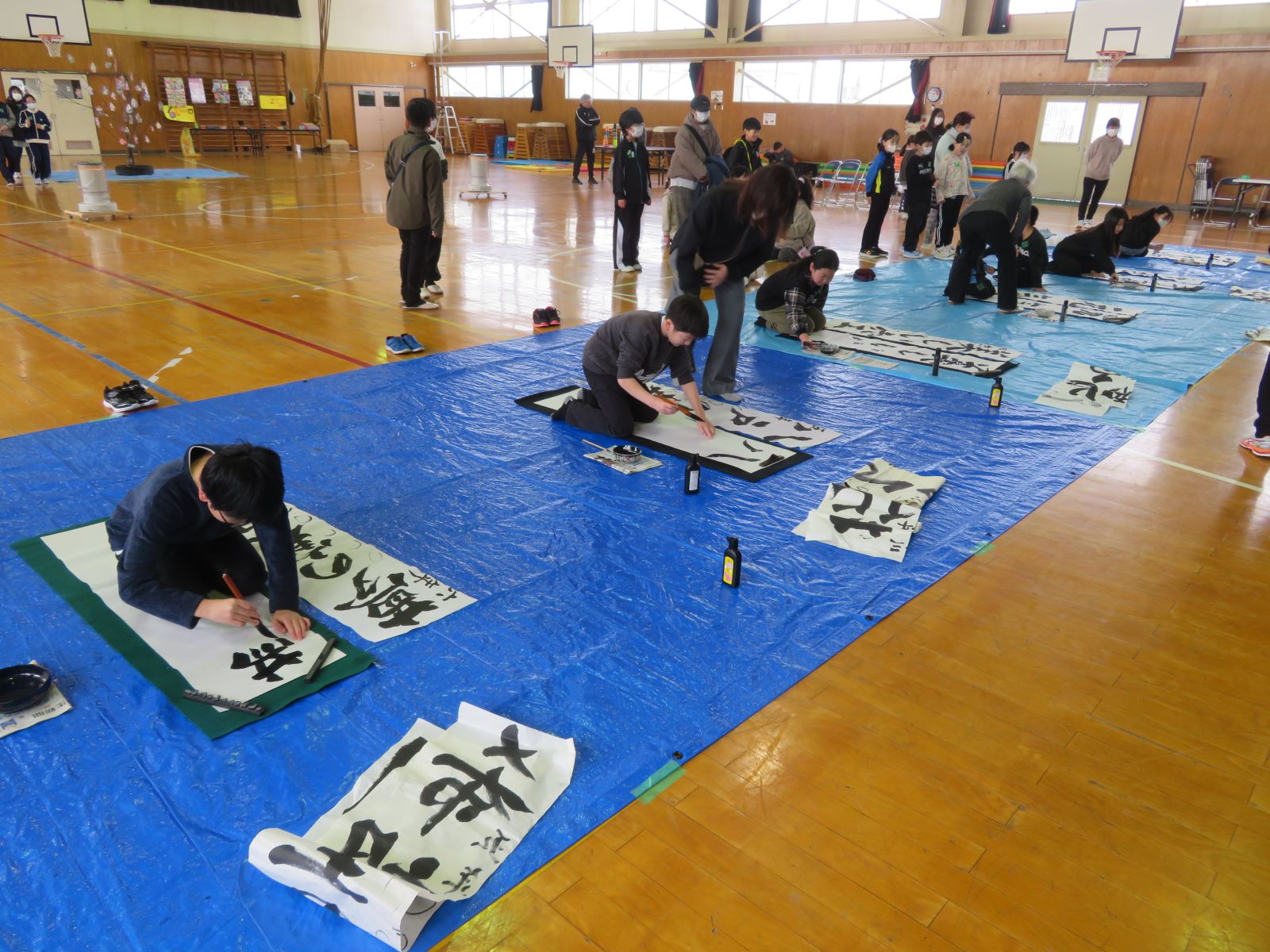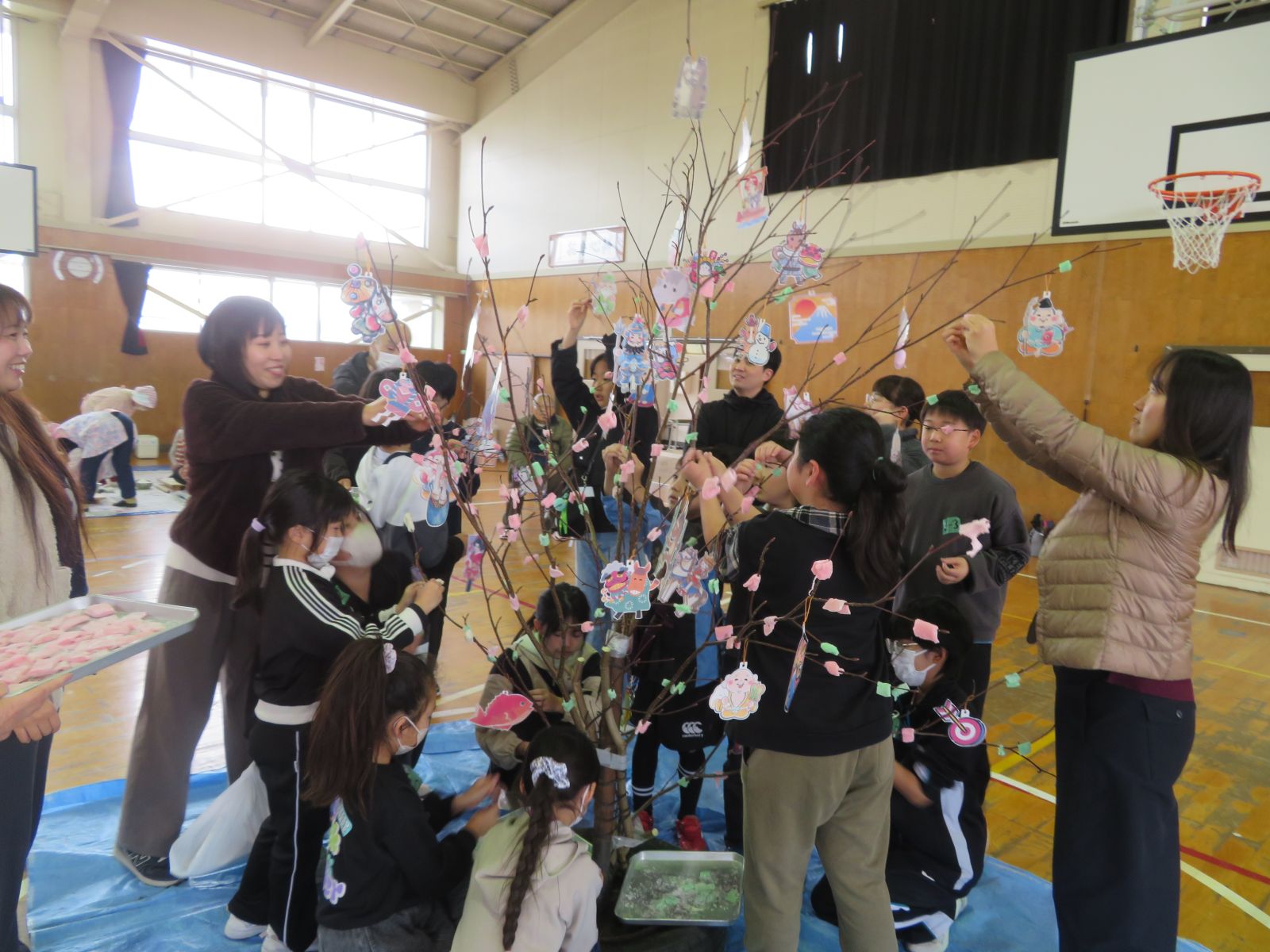 1月9日には、毎年恒例の書初め会がPTA三役と地域の社会福祉協議会の主催で行われました。各学年の希望者60人ほどが参加し、書初めをしたり餅花を飾ったりしました。つきたてたてのお餅もおいしくいただきました。準備してくださった皆様ありがとうございました。