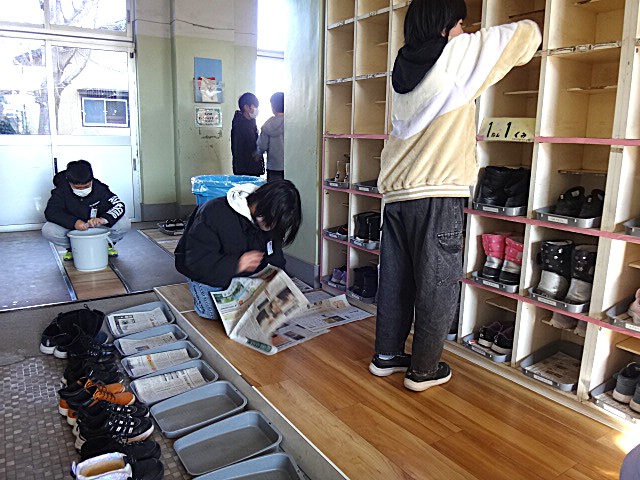 トレーを抜いた下足箱は、きれいに水拭きです。