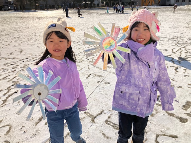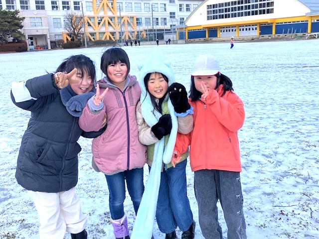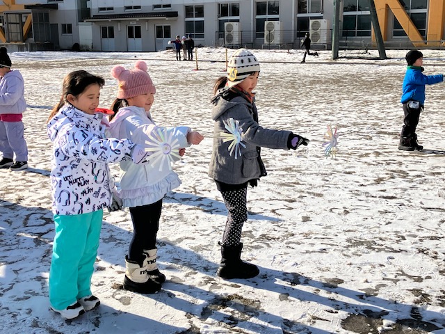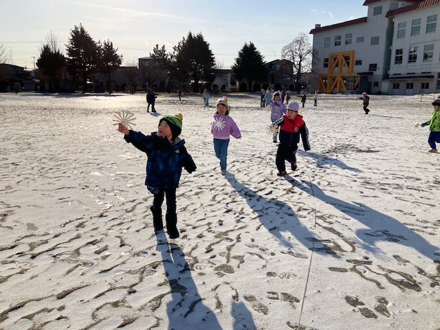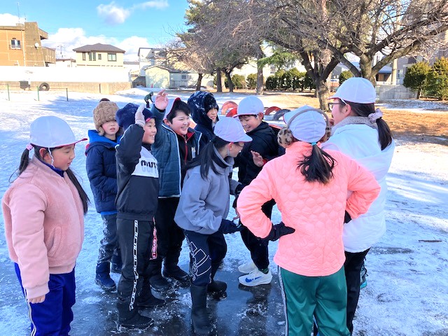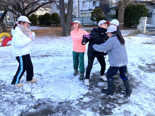 雪や氷を使って冬遊びを創造し楽しむ小中野っ子。
