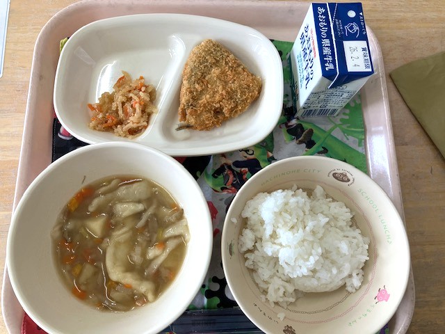 献立は、ご飯・アジフライ・たらのこいり・