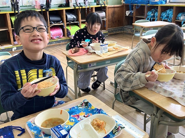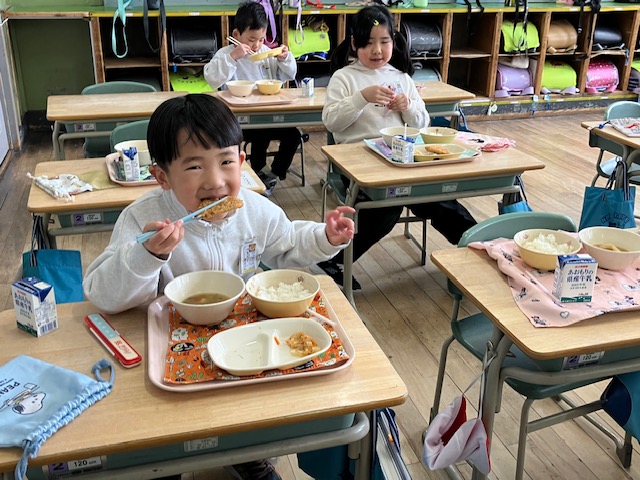 美味しい給食を味わっていました。