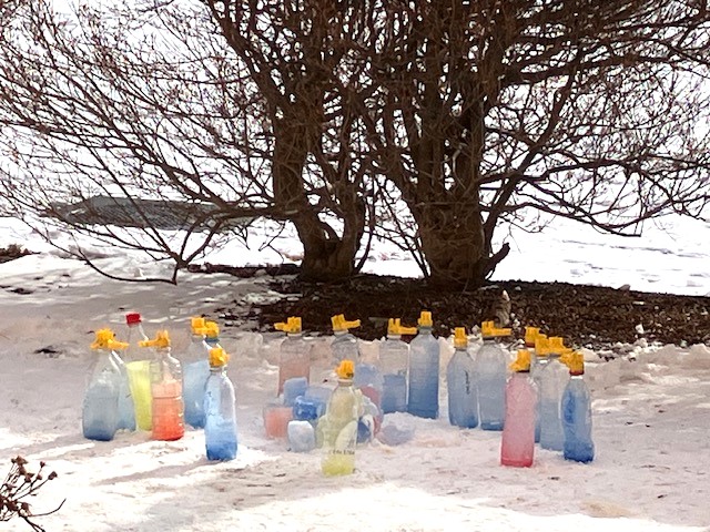 ペットボトルで囲んで、氷のオブジェ、完成!