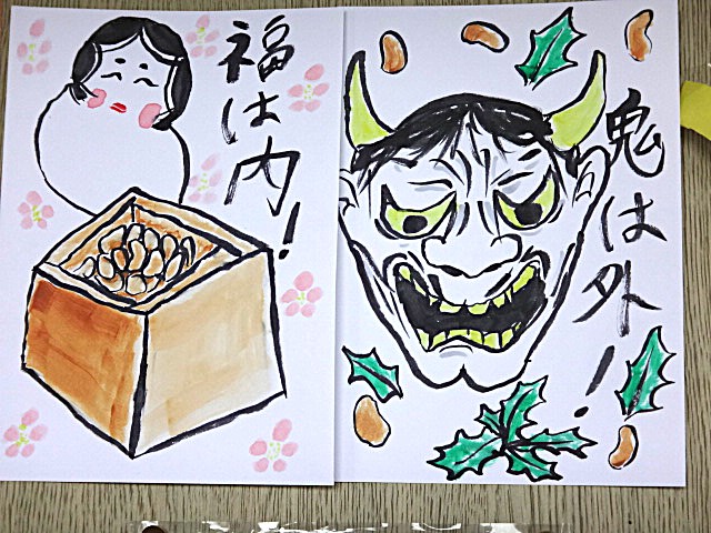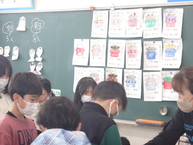 さて、すてきな節分の絵が飾ってある4年生の