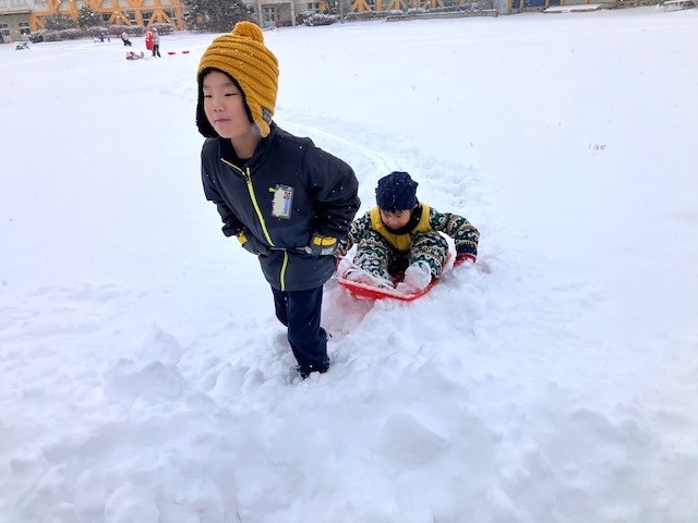そして、中休みには、雪がまた積もり絶好の遊び場