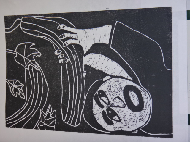 <廊下の掲示より~4年生の版画作品~>