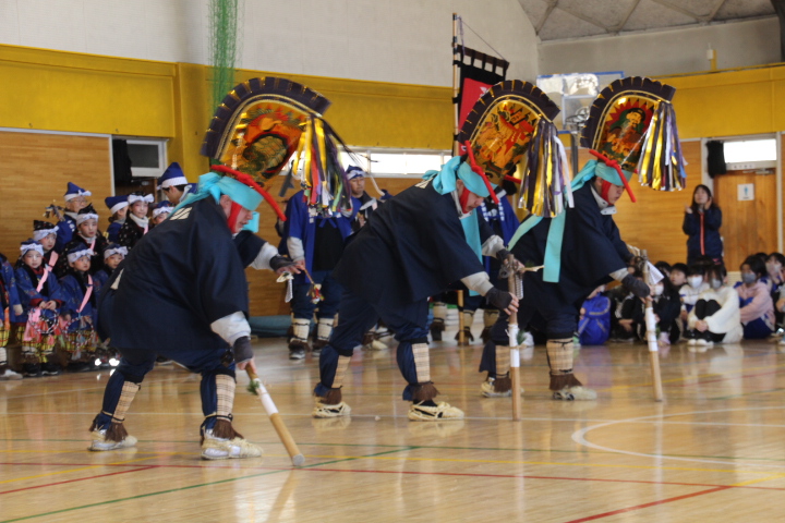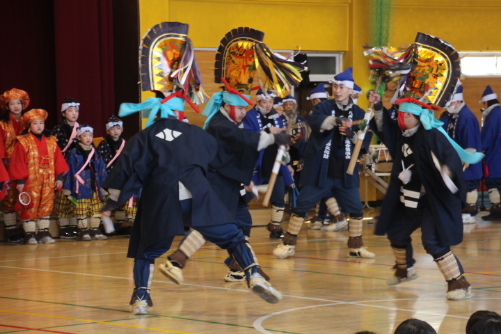 体育館に小中野えんぶり組の登場です。