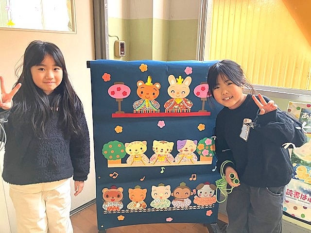 図書室の前で。もうすぐ、ひな祭りですね。