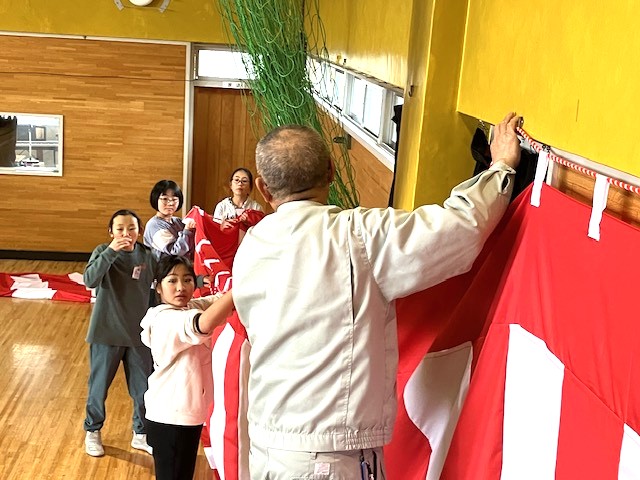同時作業で、男子はひな壇の設置ですね。